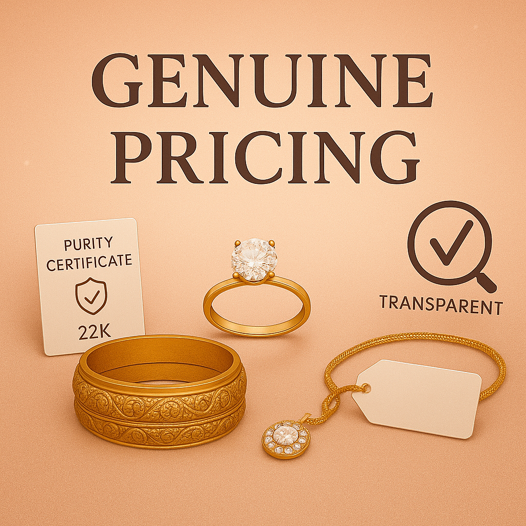 At Bharat Art Jewellers, we believe that trust is the real treasure. That’s why our Genuine Pricing promise ensures that every piece you purchase is backed by honesty, transparency, and value.